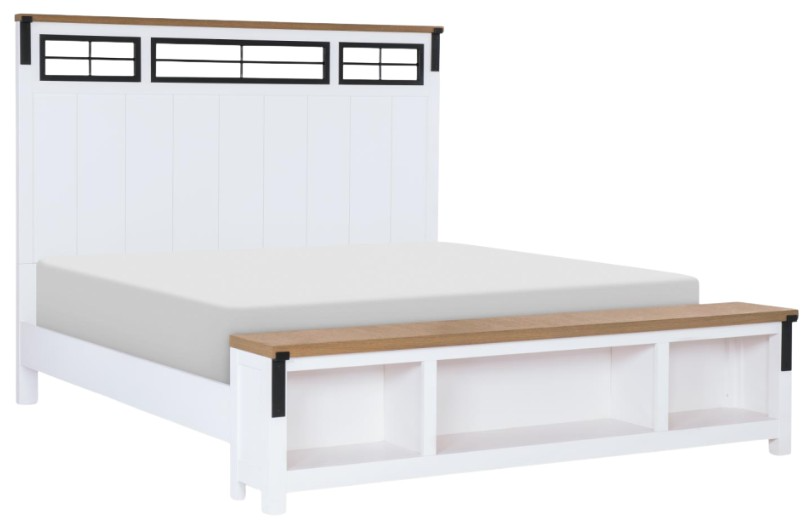 The Legacy Classic Franklin Natural White Queen Panel Bed features a fresh, modern farmhouse design with a two-tone finish combining harvest oak tops and natural white bases. It includes a tall farmhouse panel headboard and matching footboard, clean lines, accent planking and block feet.Read More