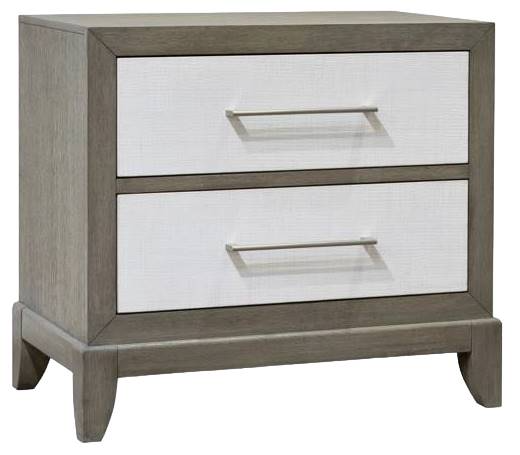 Painted linen drawer fronts and accents add texture and are also used as backing and under fretwork. Clean, contemporary brushed nickel hardware nicely offsets the natural finish tones of Haven and Driftwood. Box-on-stand design adds unique depth and dimension to the cases. Beautiful Chippendale inspiration is evident across the fretwork.