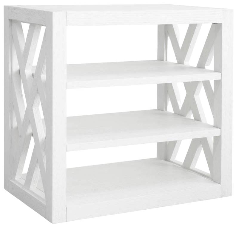Painted linen drawer fronts and accents add texture and are also used as backing and under fretwork. Clean, contemporary brushed nickel hardware nicely offsets the natural finish tones of Haven and Driftwood. Box-on-stand design adds unique depth and dimension to the cases. Beautiful Chippendale inspiration is evident across the fretwork.