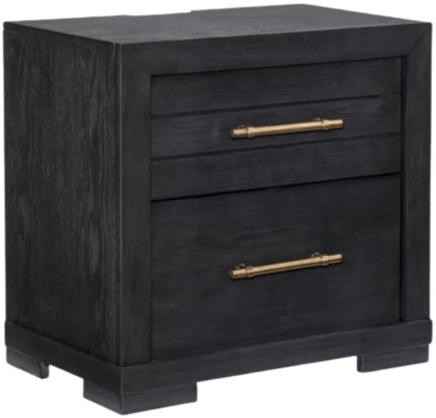 Tuck away books in one of two deep drawers to keep your bedside clutter free. There is an outlet and three USBs on the back for clever wire management and overnight charging. The charred oak finish and antique gold hardware create a look that will easily fit with any bedroom décor.