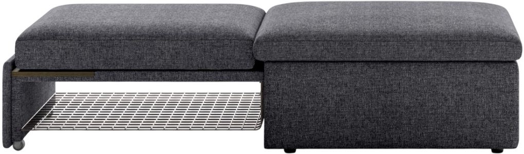 The convertible ottoman sleeper provides versatile solutions for modern living, featuring an integrated coffee table surface and mattress section storage.