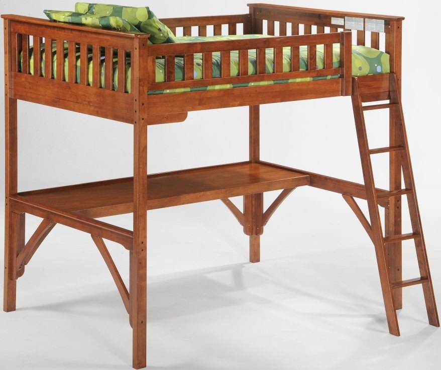Twin loft bunk bed with straight desk