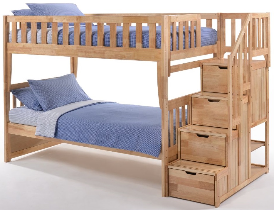 The Peppermint bunk is fun, comfortable and has space for nearly everything. It’s got stairs & railings with drawers in every step! Note the surprise extra shelves at the back too. Go all the way and add Rolling Storage Drawers or a Trundle Bed. Not least, the stairs are switchable, assemble them at either end. Our Spices Bunk Beds give you all the comfort, style and quality you expect from a Night and Day Furniture product. Our bunks feature all our best construction and finishing standards while remaining a great competitive value.