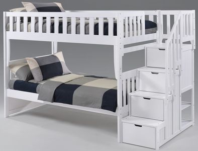 The Peppermint bunk is fun, comfortable and has space for nearly everything. It’s got stairs & railings with drawers in every step! Note the surprise extra shelves at the back too. Go all the way and add Rolling Storage Drawers or a Trundle Bed. Not least, the stairs are switchable, assemble them at either end. Our Spices Bunk Beds give you all the comfort, style and quality you expect from a Night and Day Furniture product. Our bunks feature all our best construction and finishing standards while remaining a great competitive value.